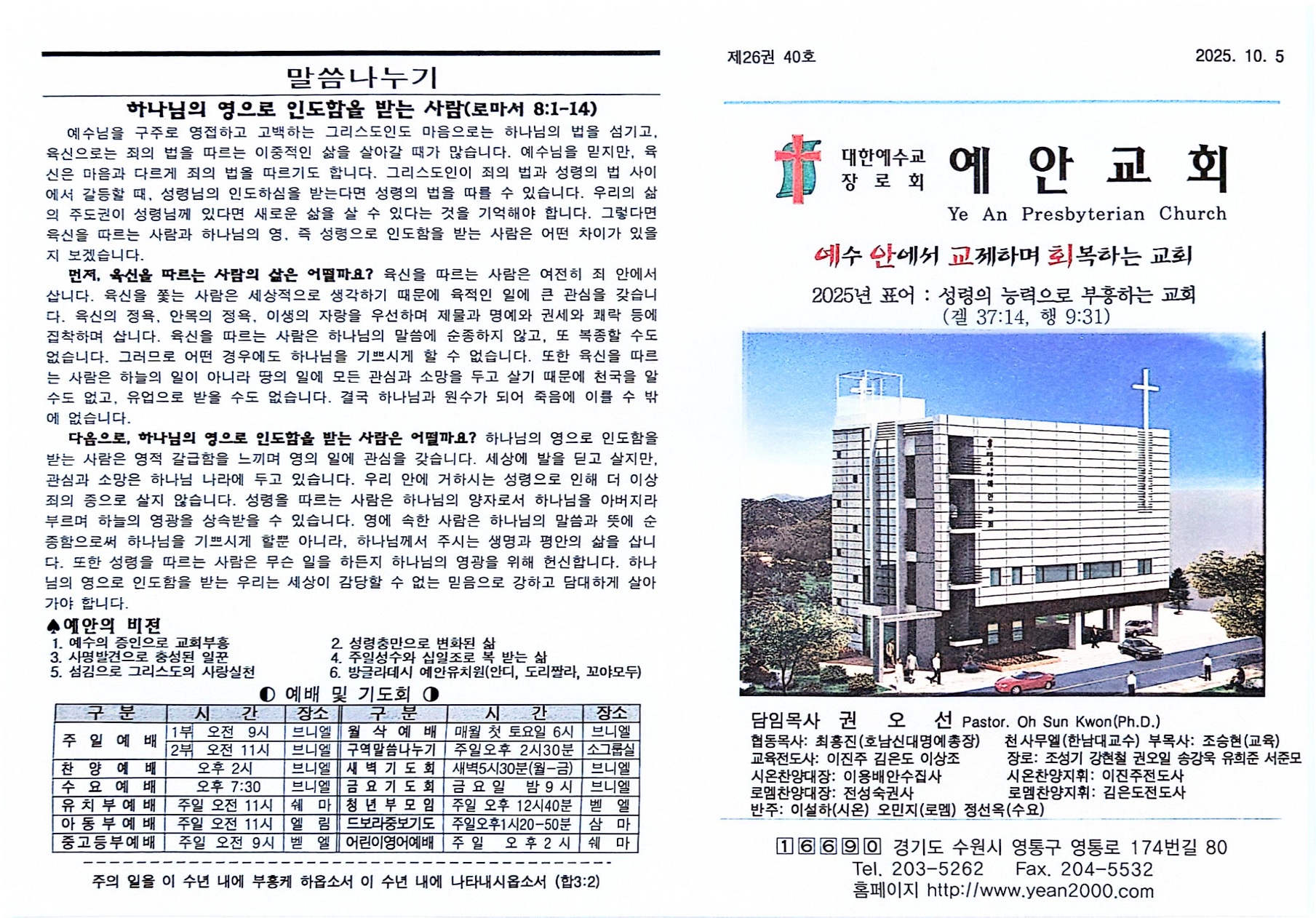 10월 5일 교회소식