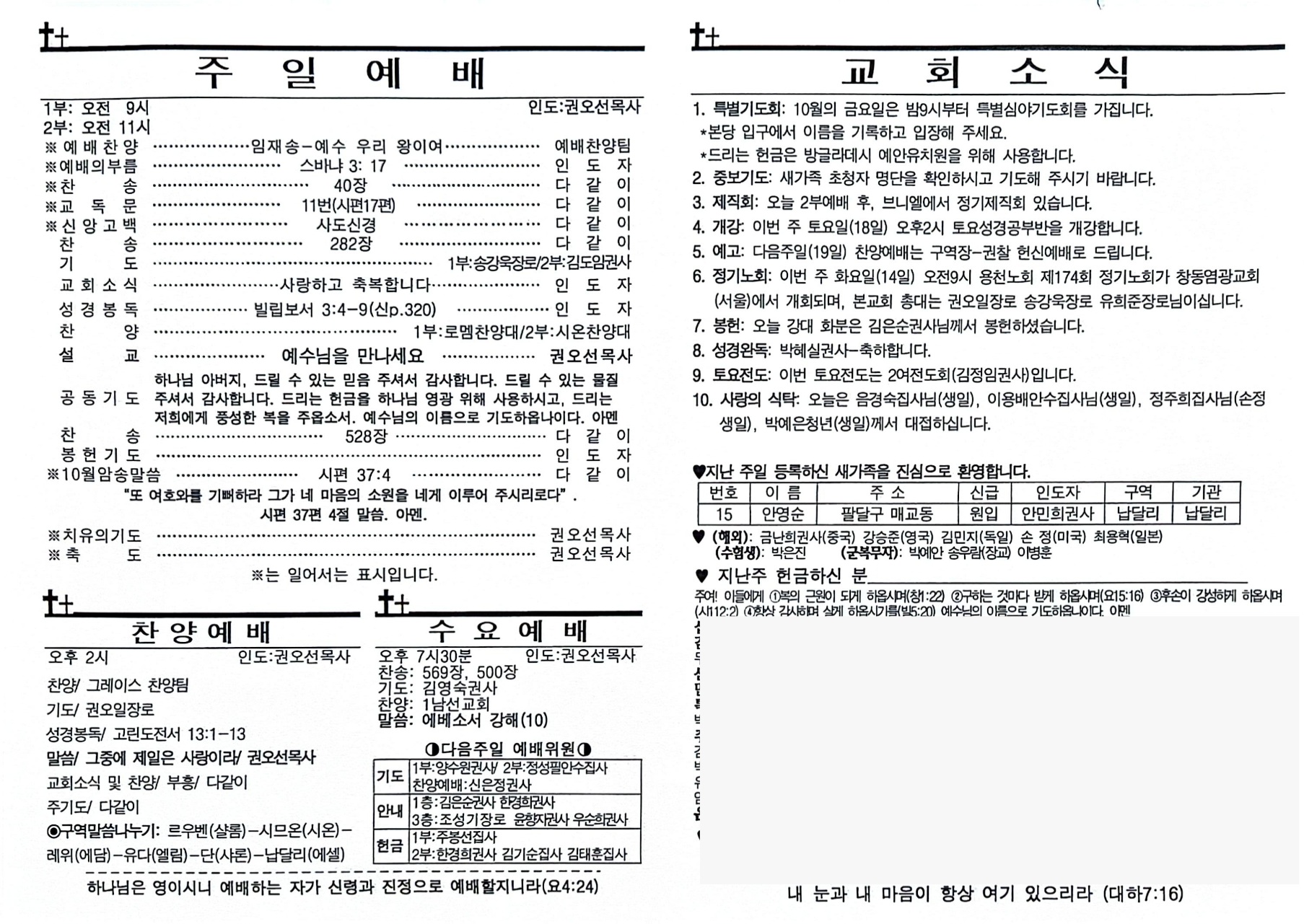 10월 5일 교회소식