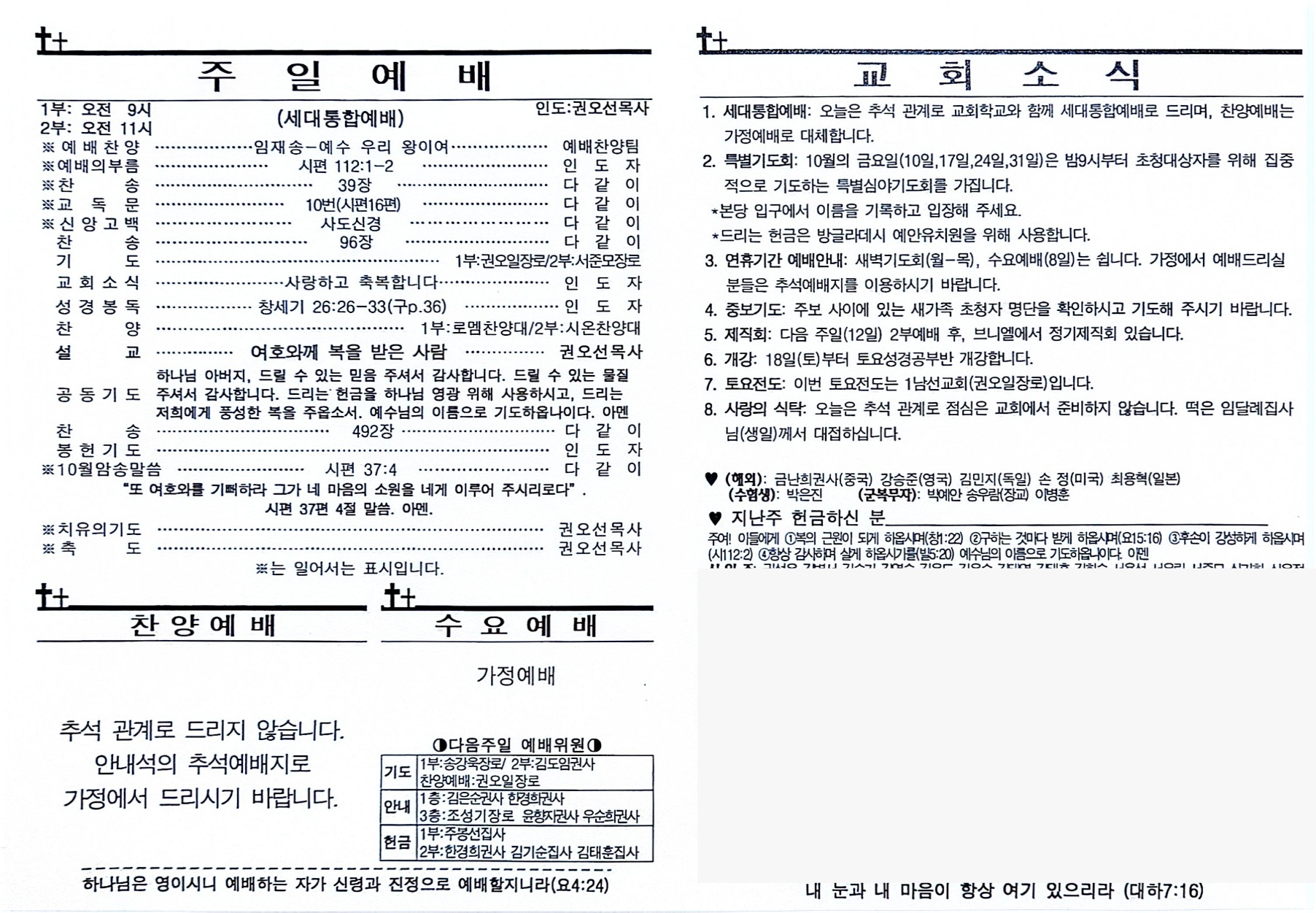 10월 5일 교회소식